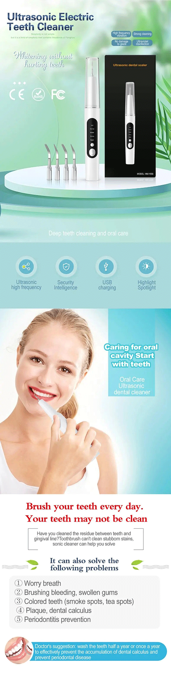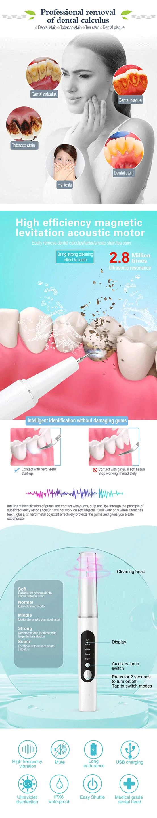 Plaque/Tartar Remover for Teeth, Dental Calculus Remover Teeth Cleaning Kit with LED Light & 5 Adjustable Modes